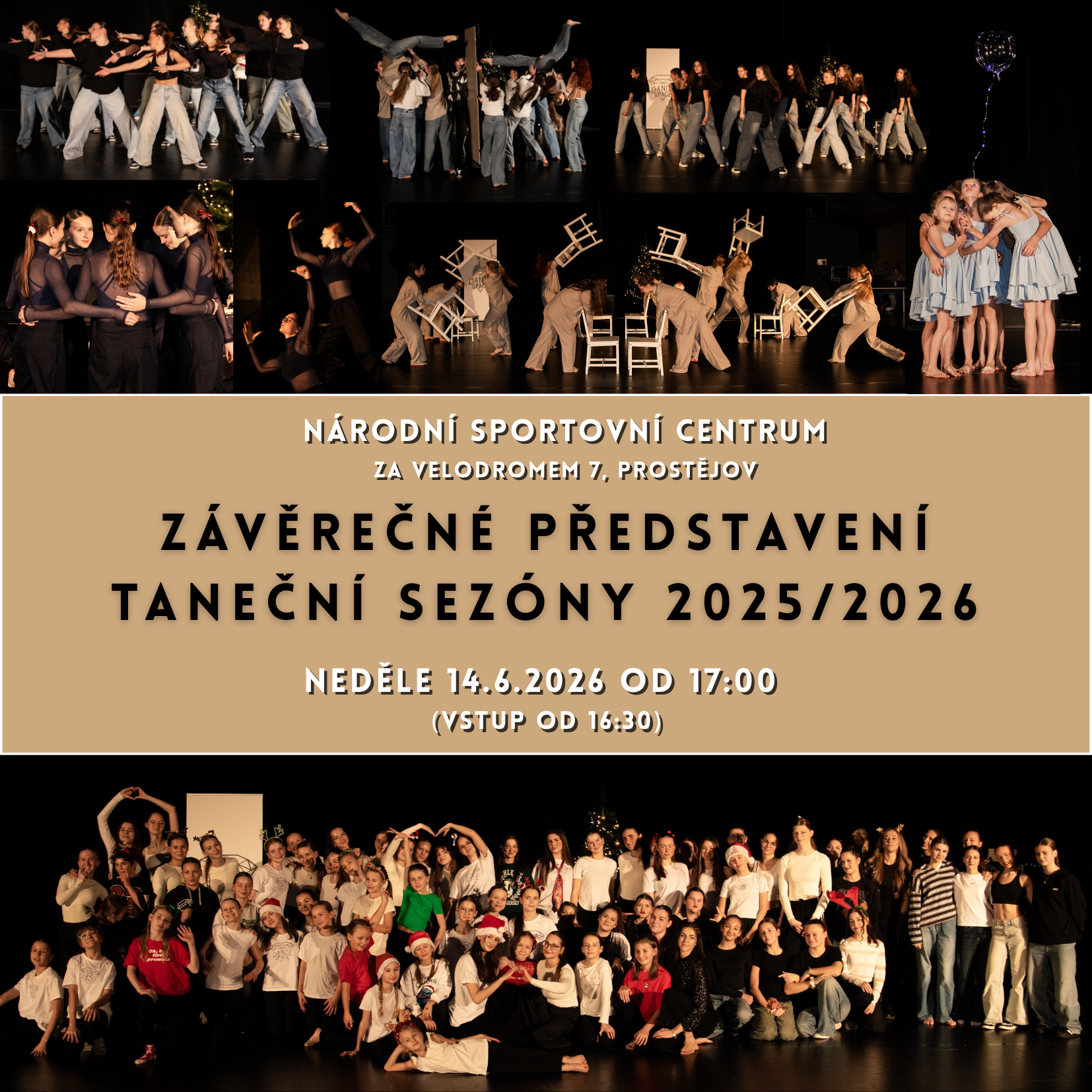 Taneční studio Dance Space vás zve na druhý ročník tanečního představení "Závěrečné představení taneční sezóny 2025/2026". V rámci představení uvidíte nejen ukázky choreografií, které naši tanečníci připravují na soutěžní sezónu 2026, ale i další choreografie připravená jen pro tuto příležitost.